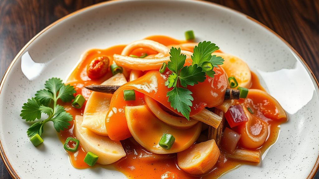 This hearty dish combines tender chicken and flavorful pork with aromatic onions and rice, creating …